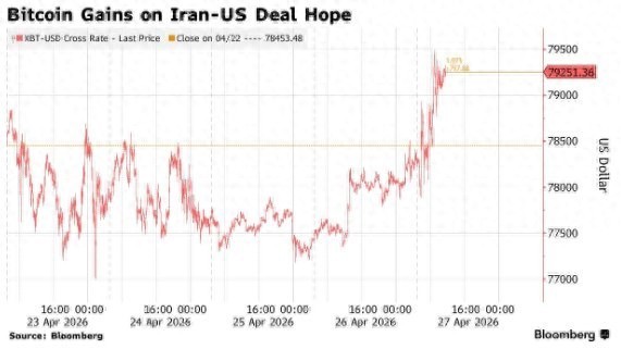 智通财经APP获悉,周一,比特币继续缓慢攀升至80,000美元附近,投资者正在评估美伊两国围绕霍尔木兹海峡对峙局势的最新进展。这一原始加密货币一度上涨1.6%,触及79,488美元,创下自1月31日(上一次位于80,000美元上方)以来的最高水平。截至发稿,其交易价格约为77,613美元。第二大数字资产以太坊涨幅一度达到1.7%。