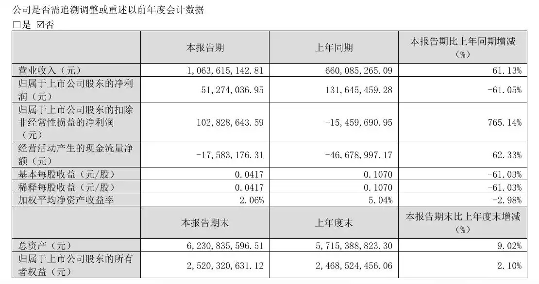 通鼎互联表示,公司一季度营业收入和营业成同比增加主要系本期受市场行情影响,光纤量价齐升,以及本期新增并表子公司和本机电所致。公司经营活动产生的现金流量净额(净流出)较上年同期下降62.33%,主要原因是本期新增并表子公司和本机电,经营活动产生的现金流量整体向好。