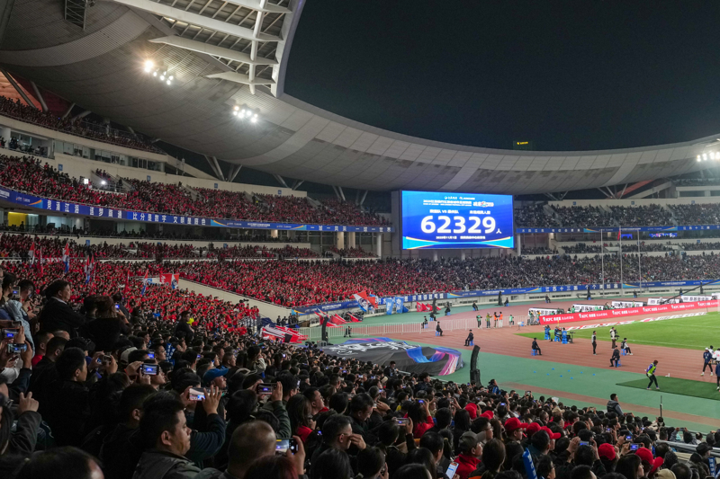苏超决赛吸引62329人入场,再度刷新中国业余足球赛事单场观赛人数纪录(新华社)