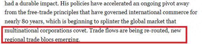 文章还指出,美国政府发起的贸易战引发了其传统盟友对自身依赖美国经济和贸易关系的反思。