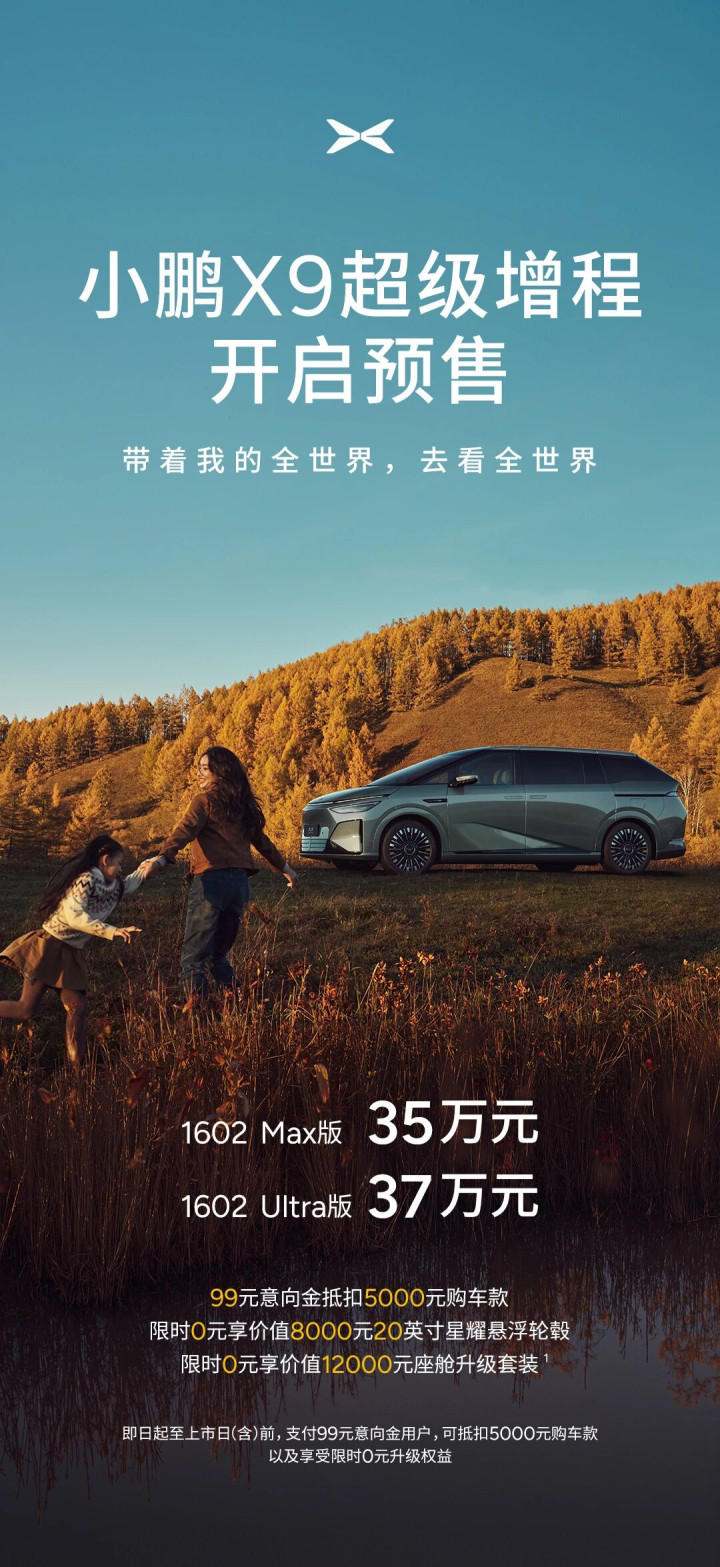 小鹏2025科技日结束后的第二天,小鹏X9超级增程开启预售。