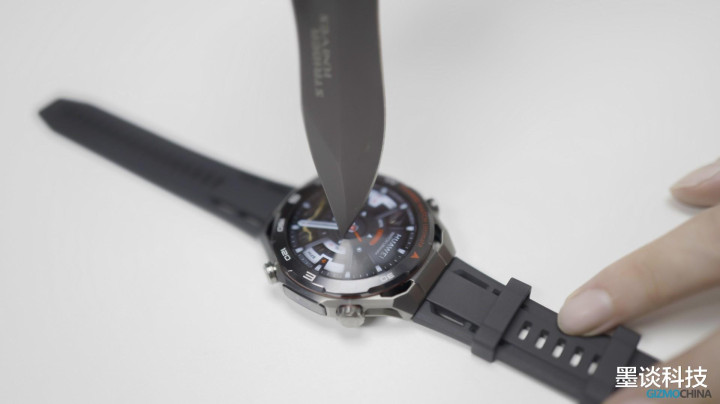 手表采用纳米微晶陶瓷表圈和蓝宝石玻璃表面,配备1.5英寸OLED显示屏。经实际刮擦测试,表面未出现可见损伤。其镂空设计减轻视觉重量,表带快拆结构使更换操作更为便捷。150米防水等级使其成为目前防水性能最强的智能手表之一。