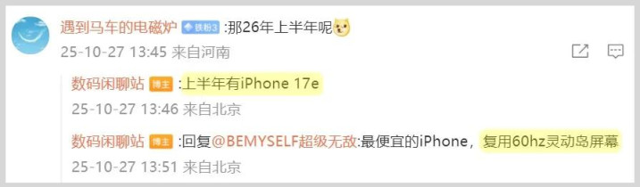 近日,博主@数码闲聊站在回应网友评论中透露,明年上半年,苹果依然会更新“e”系列,推出下一代iPhone 17e。